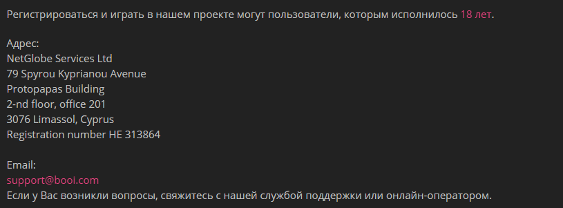 Контакты казино Буи (Booi)